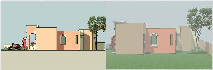 ![]() Nombre: Minicompacta N-50 Año de Diseño: 2010 (05 feb ) Maqueta Virtual: 2013 (05 agosto) Estilo: Típico Regional Mexicano Proyecto: Arq. Godofredo Oscós Flores Terreno: 6.80 m. x 14.00 m. Superficie de construcción. 46.50 m2. Programa Arquitectónico (9 espacios): PLANTA BAJA: 1- Jardín Frontal y Posterior, 2-Cochera, 3- Pórtico, 4-Sala, 5- Comedor, 6- Cocina, 7-Baño completo, 8-Recámara, 9-Patio Servicio. Descripción: Vivienda pequeña con los espacios básicos, para parejas sin hijos, o estudiantes, que buscan privacidad sin dejar de lado la calidad espacial. El diseño es típico mexicano con un pórtico que a primera vista da la sensación de una casa más grande. Fachada Frontal Fachada Posterior Planta Arquitectónica Planta de Azotea Fachada Lateral Derecha Vista Lateral Derecha Vista Frontal Vista Posterior Vista Aérea Frontal Vista Aérea Posterior Sección Transversal Vista Frontal Sección longitudinal Vista Lateral Izquierda | |