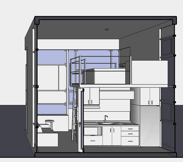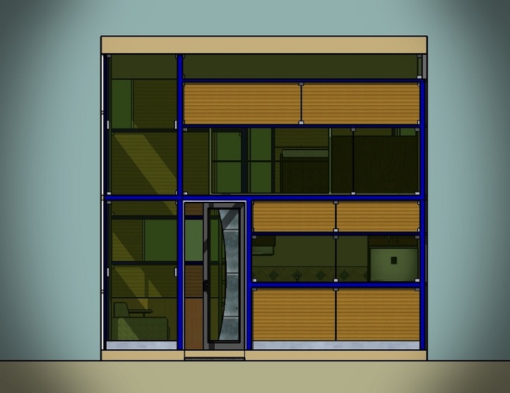 ![]() Nombre: Cubo4.60 Año de Diseño: 2011 (...28 abril) Ilustraciones 3d: 2015 (...28feb) Estilo, tipología, influencia: Racionalismo contemporáneo Proyecto: Arq. Godofredo Oscós Flores Terreno: 7.00 m x 7.00 m. Superficie de construcción. 29.60 m2 Programa Arquitectónico (4 espacios): PLANTA BAJA: 1- Sala-cocineta, 2- Baño, 3-Lavandería, PLANTA ALTA: 4-Dormitorio. Descripción: Se trata de una mini casa cúbica de 4.6 m x 4.6 m x 4.6m. para una o dos personas que puede ubicarse en un pequeño espacio de un patio o jardín posterior de alguna casa aprovechando las instalaciones de ésta. Para rentar a estudiantes de profesiones creativas que requieren independencia y privacidad. ![]() Fachada Frontal ![]() Fachadas: Posterior, Derecha, Izquierda ![]() Planta ![]() Sección Vista Frontal | |
